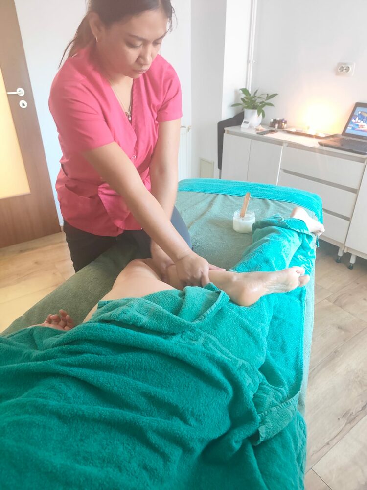 Masajul Balinez este o terapie holistică ce combină armonios presopunctura, reflexologia și tehnicile de **frământare în profunzime** (similar *deep tissue*), executate ritmic cu palmele și antebrațele. **Obiectivul principal** este de a stimula circulația, de a elibera tensiunile musculare cronice și de a restabili fluxul energetic al corpului. Folosirea uleiurilor esențiale premium amplifică efectul relaxant și detoxifiant. **Beneficiile includ:** - Relaxare profundă și combaterea insomniei. - Ameliorarea durerilor musculare și articulare. - Revitalizarea și creșterea nivelului de energie. **O călătorie senzorială care aduce echilibru perfect între corp și minte.**